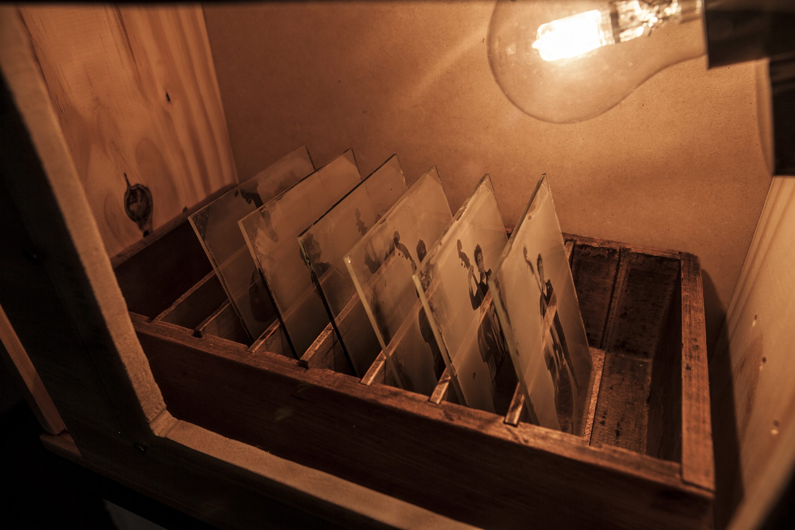 Es una técnica que con mi compañera Meghan nos volvió locos, nos pareció re contra interesante descubrirla y poder tener imágenes que se forman en una placa de vidrio. Se llama colodión húmedo la técnica, que se usa en ambrotipo, y como es húmedo se tiene que fotografiar en un determinado tiempo, para que no se seque. La fotografía quedó impregnada en esa placa de vidrio.