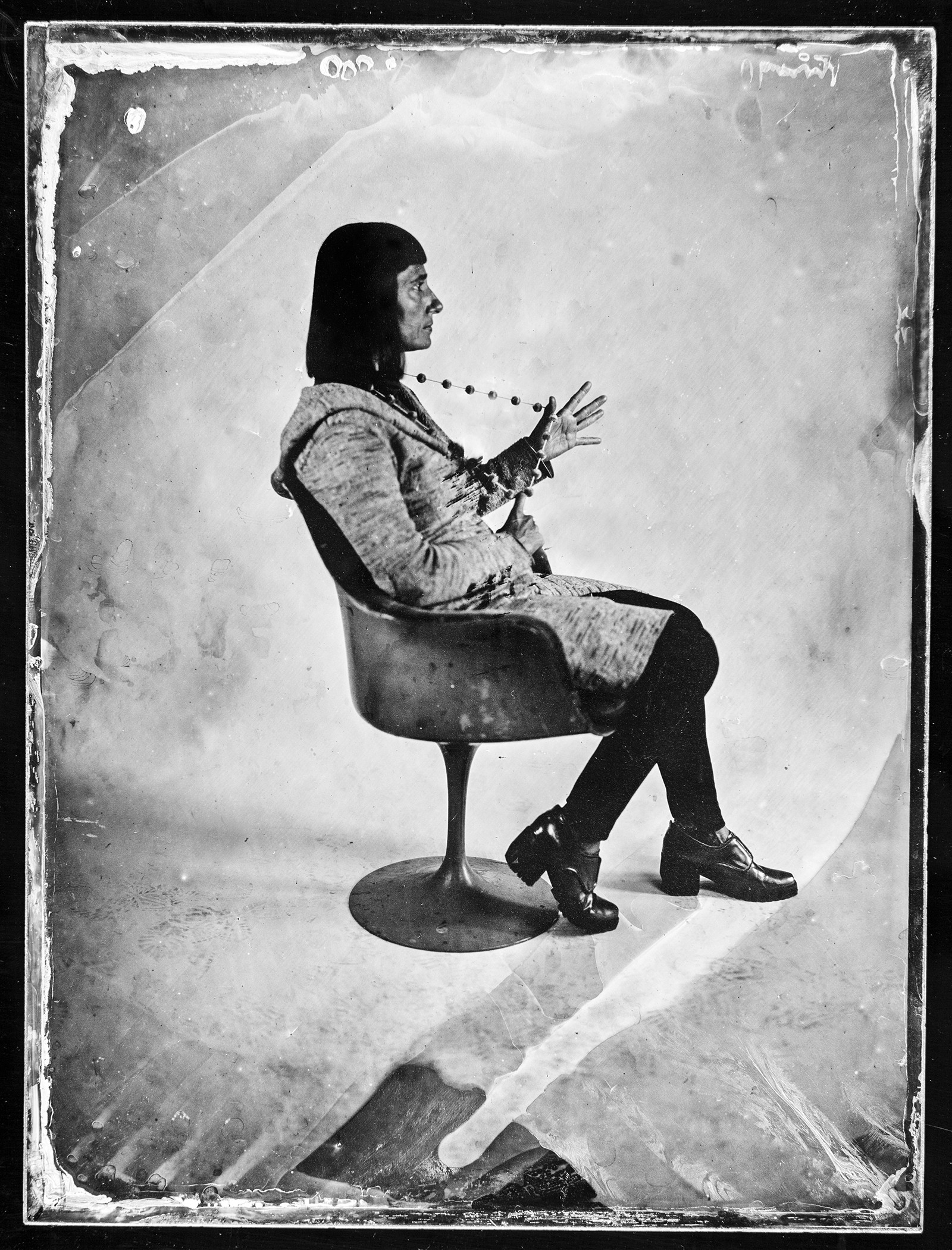 La técnica suma mucho al concepto de la fotografía porque es mostrar cuales son los comienzos de la fotografía, después del daguerrotipo, viene el ambrotipo, después desaparece todo y, tiempo después, aparece el papel fotográfico. Ahí se empieza a volver todo muy vertiginoso, tan rápido, que estas técnicas desaparecen en muy poquitos años. Entonces me parece que un poco es arrancar de cero, proponer a los músicos que se queden quietos una determinada cantidad de segundos suma a mi experiencia y a la experiencia de ser fotografiado como en esa época.